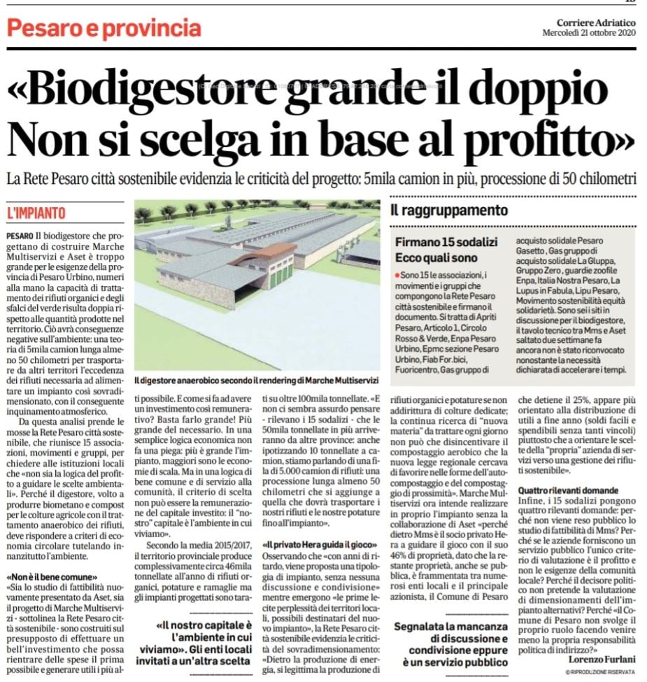 In questi giorni si fa un gran parlare di Biodigestore, con le prime lecite perplessità dei territori locali, possibili destinatari del nuovo impianto, necessario per la gestione e lo smaltimento, per tutta la provincia pesarese, sia dei rifiuti organici, sia delle potature e ramaglie.